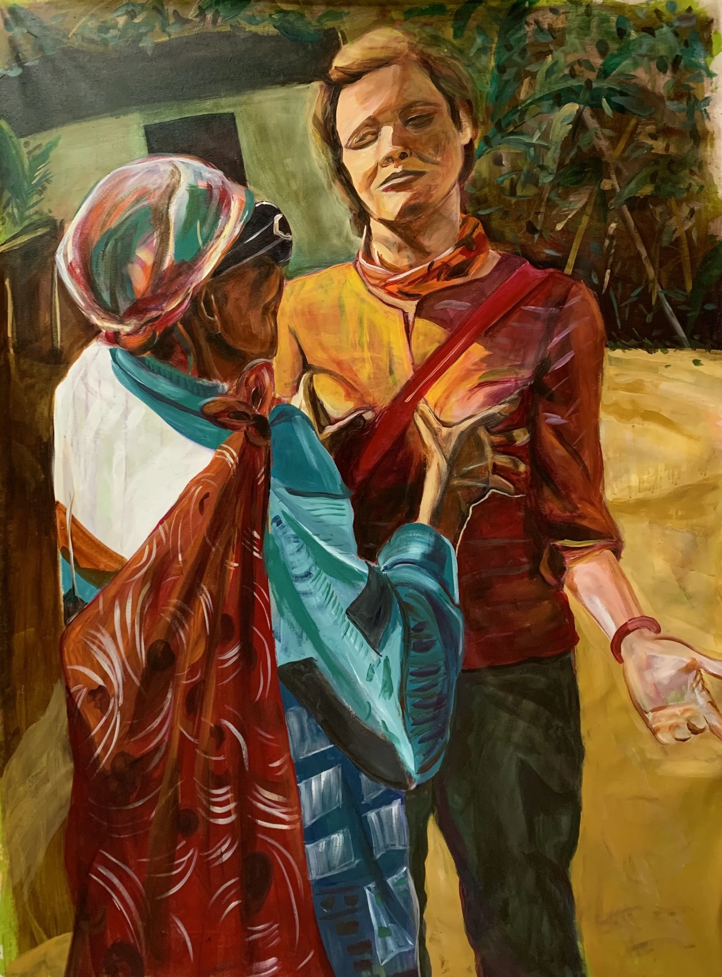 In corona werd onze wereld plots heel erg klein, maar door het internet ook immens groot. Opeens had ik toegang tot modellen van over de hele wereld die ik via online zoom-sessies kon tekenen/schilderen. Wat hier aan de muur hangt is slechts een peulschil van de hoeveelheid portretjes die ik tijdens corona gemaakt heb.